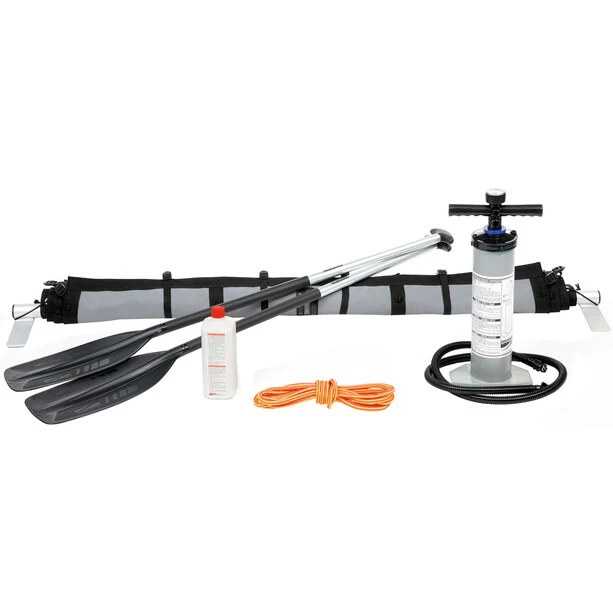Standard accessory sets appertain to basic equipment for Happy Cat Neo: 1 air pump wirht pressure gauge, 2 single blade paddle, 130 cm, 1 foredeck-cover with crossbar, 1 boat line 5 m and 1 boat care agent, 1 liter.Â