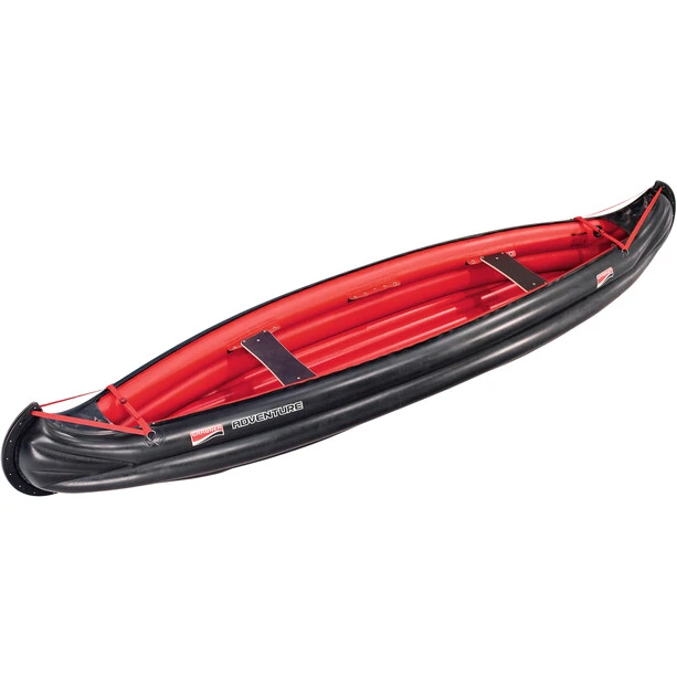 Even two children can sit next to each other on the middle seat board*. The seats* can be mounted as horizontal planks or, with the help of the belts, set to any angle. With its three seat holes, the Adventure can be used by 3 persons or the ideal seat position for two persons can be selected. The boat can be trimmed by adjusting the seat board along the length. The large luggage storage area provides space for even the most extensive adventure equipment.