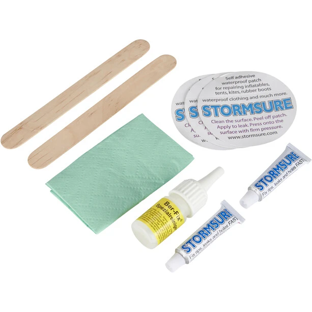 | Content / delivery size | 2 Stormsure adhesive tubes, 2 self-adhesive instant patches for waterproofing on the road, pre-treatment cleaner, cleaning cloth, 2 wooden spatulas |
