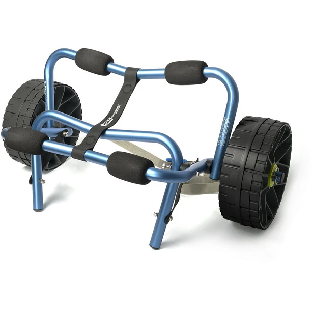 The ideal transport solution for kayaks, canoes or sit-on-tops. Constructed using light weight anodised aluminium and pneumatic wheels for a smooth ride, these collapsible trolleys are great on rough or uneven ground. All carts come with integrated Solution Bomber Tie Down Strap.